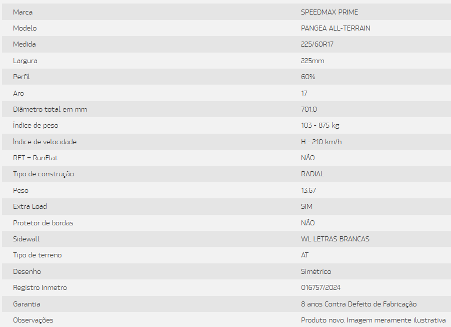 | POR MEDIDAS | 225/60R17 |